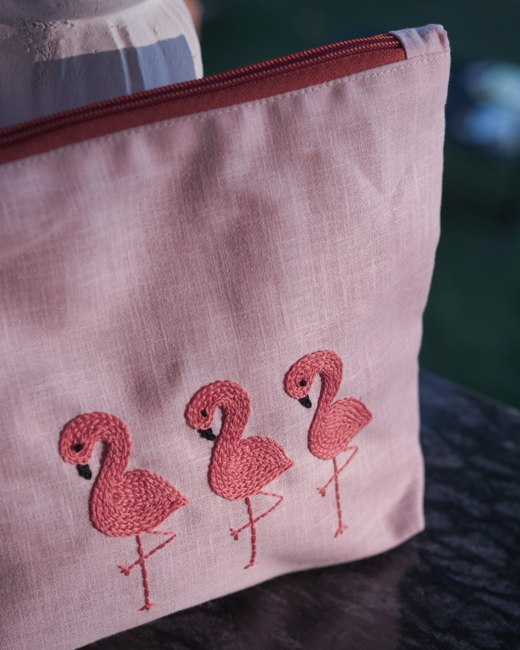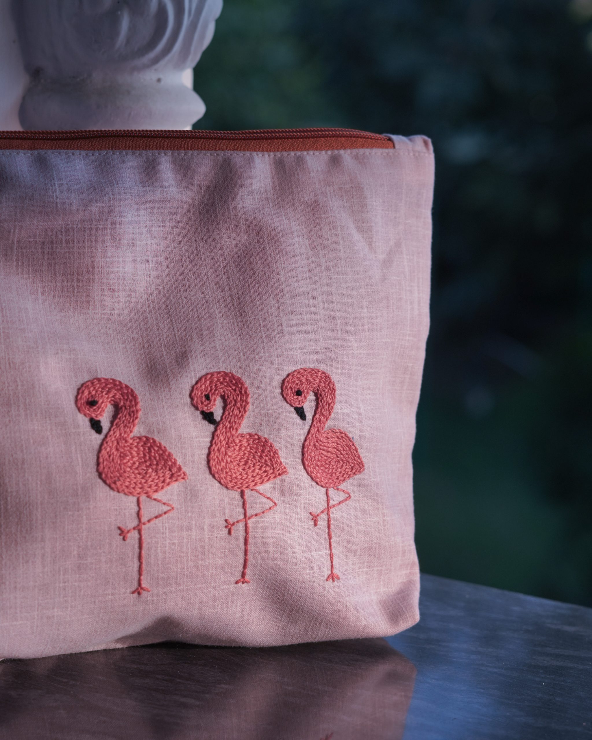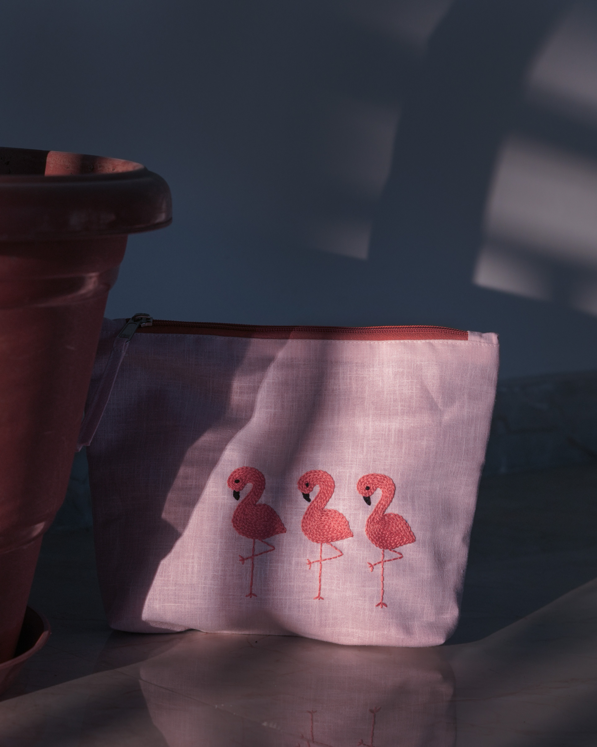 Flamingo Ballet: Hand Embroidered Pouch