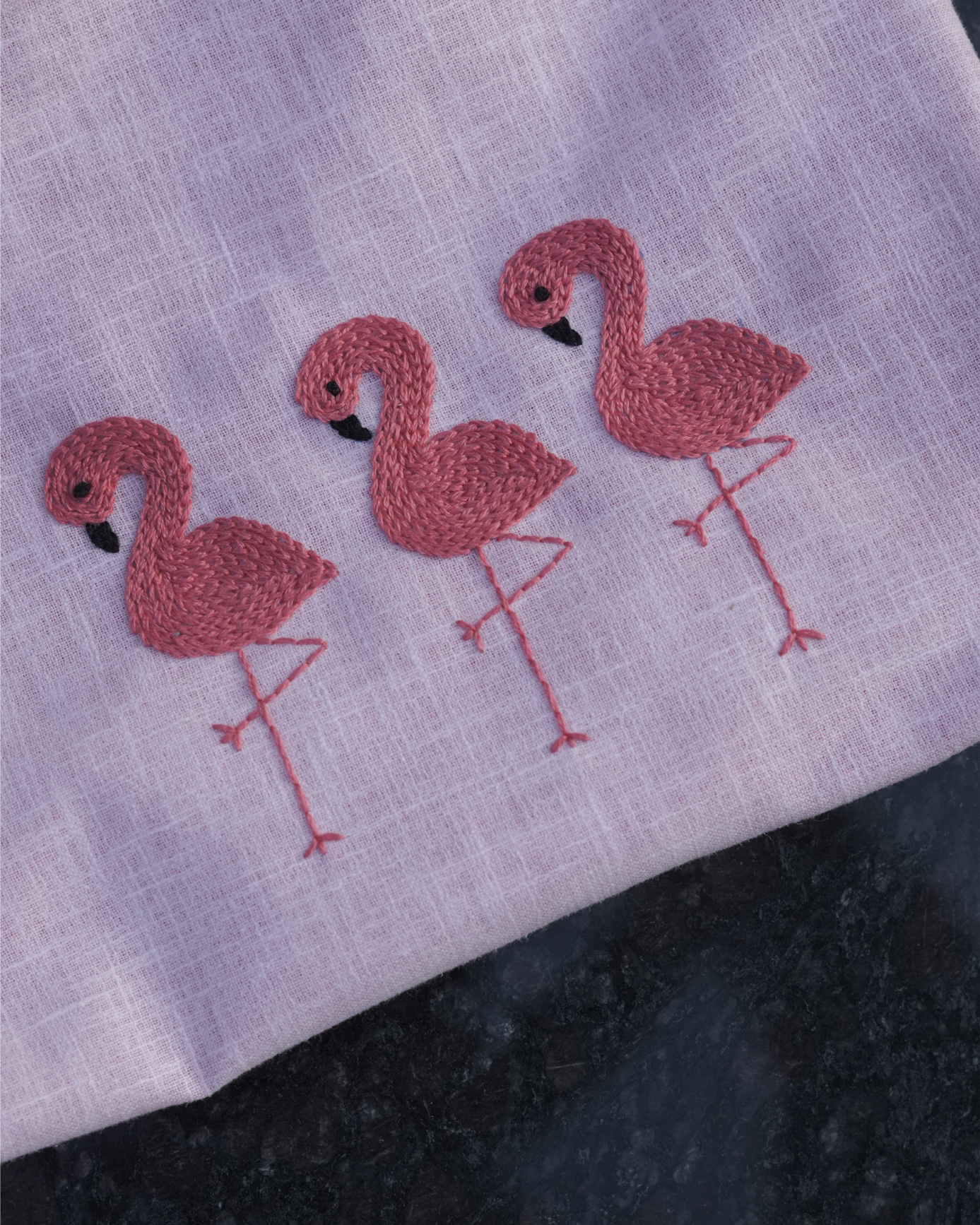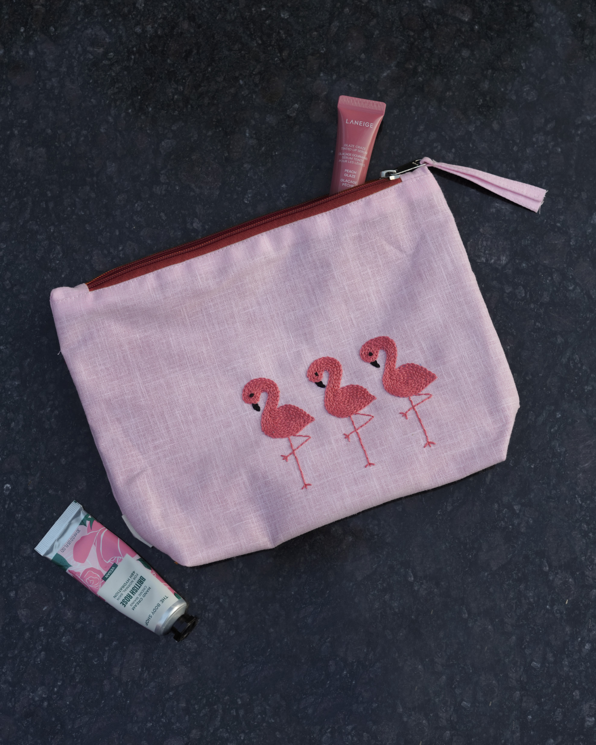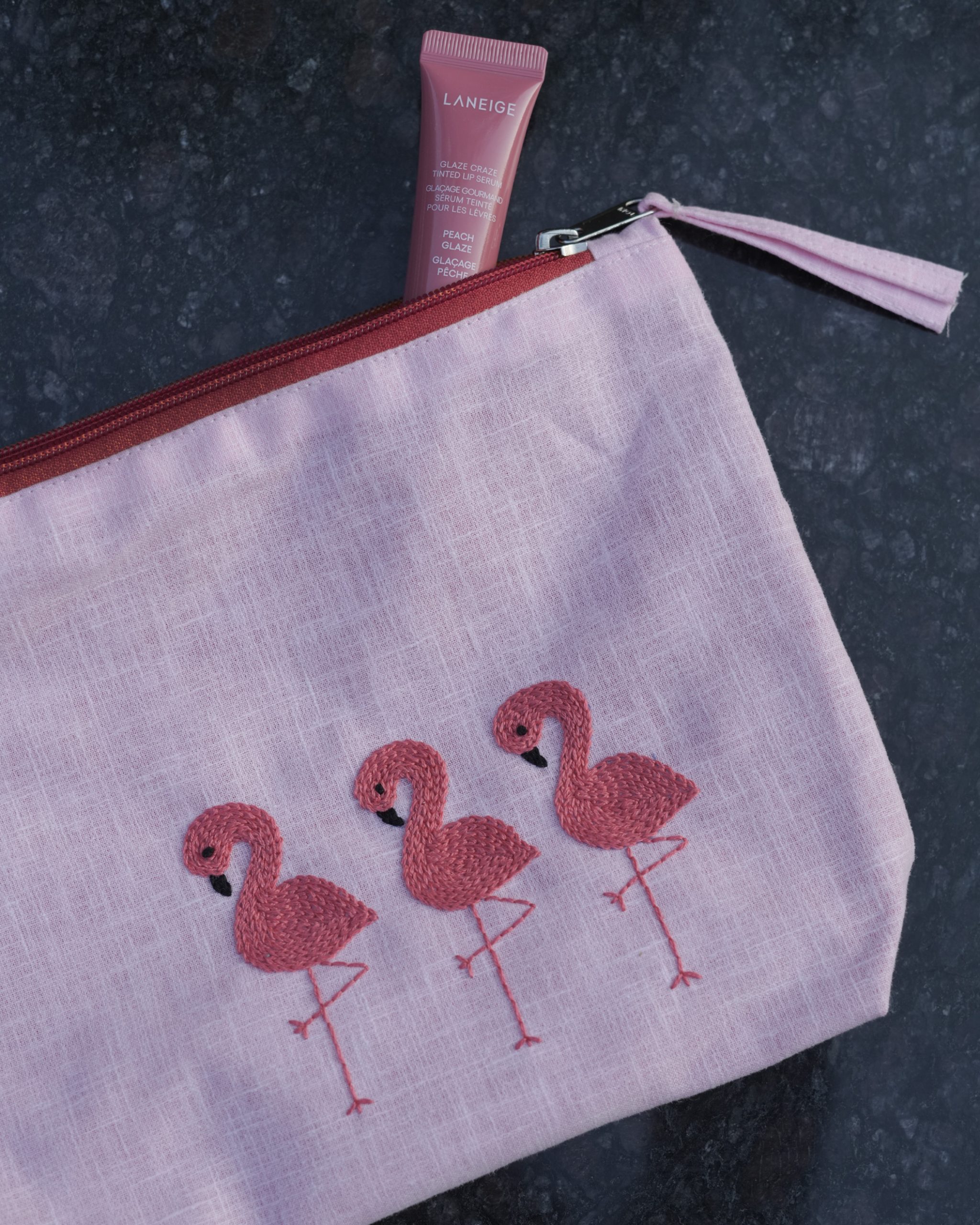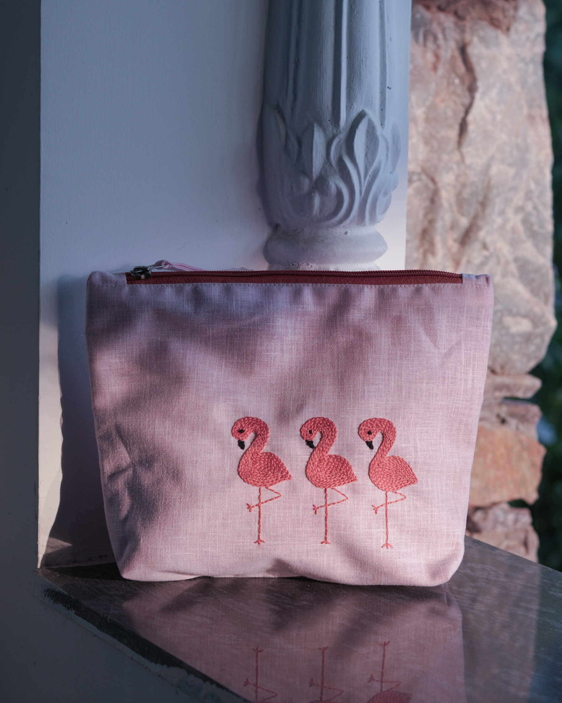 Flamingo Ballet: Hand Embroidered Pouch