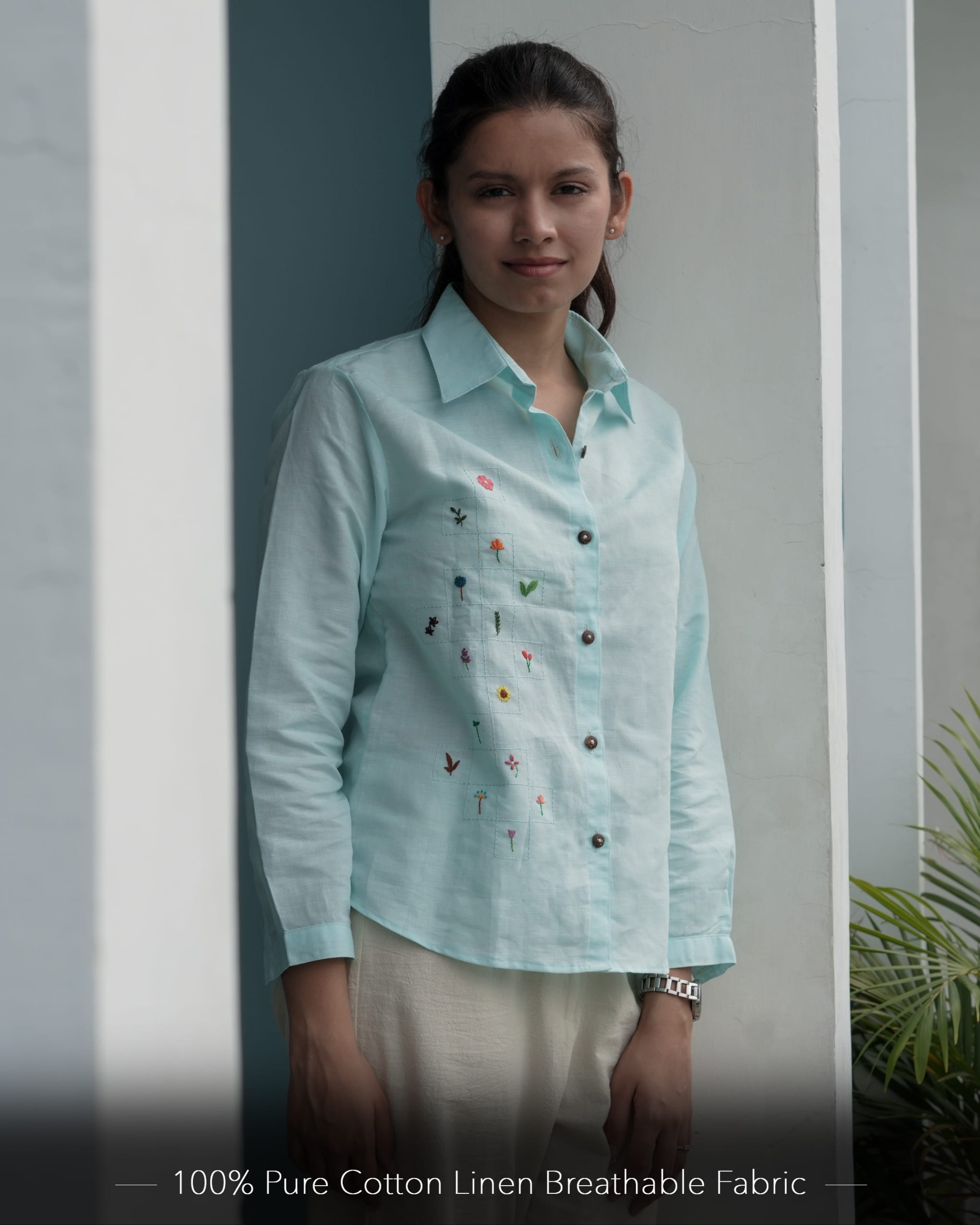 Embroidery: Each piece features hand-stitched embroidery brought to life by skilled artisans. Every motif, be it delicate florals or custom designs is thoughtfully placed, making each shirt a unique work of wearable art.