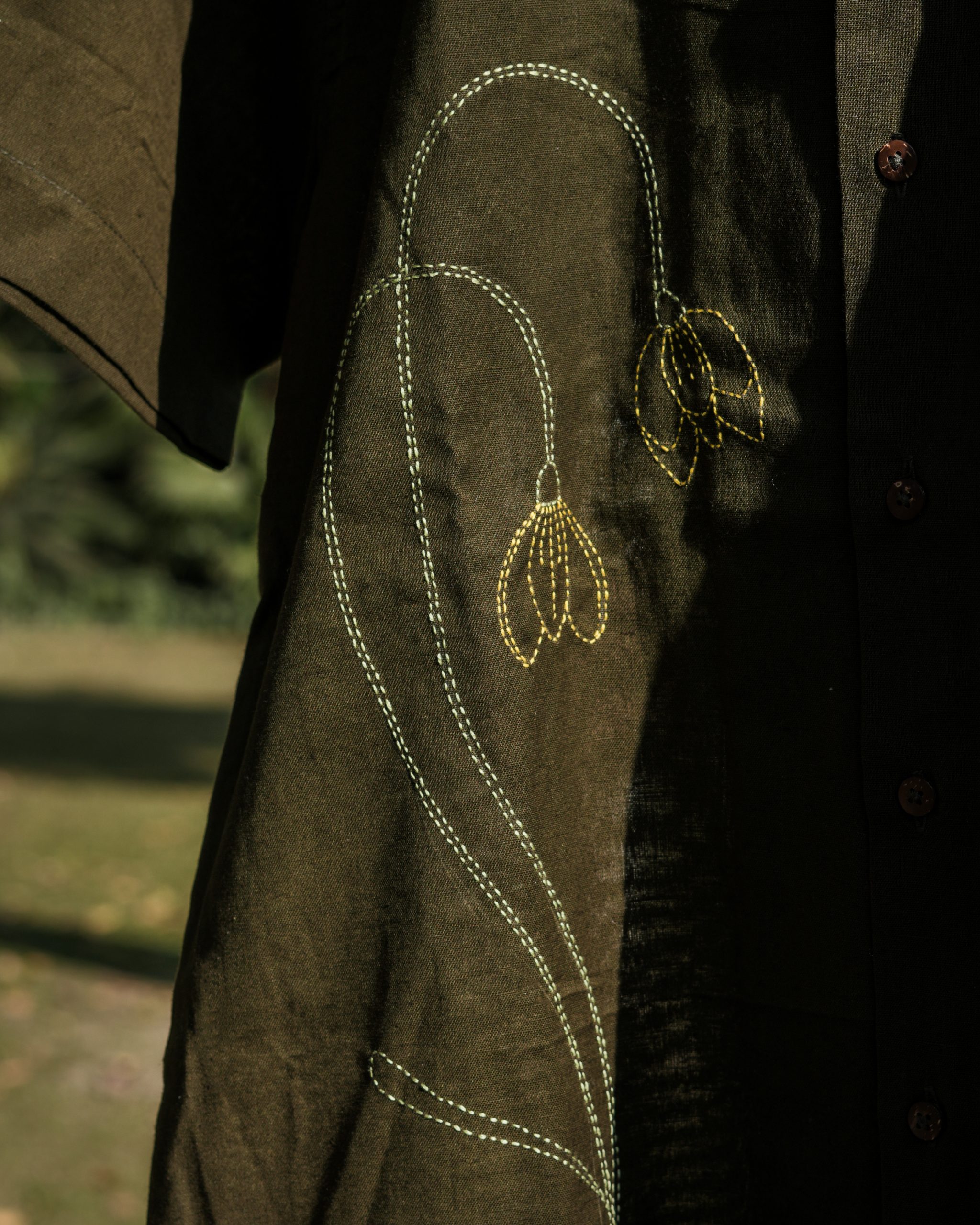 Embroidery: Each piece features hand embroidery brought to life by skilled artisans. Every motif, be it delicate florals or custom designs is thoughtfully placed, making each shirt a unique work of wearable art.