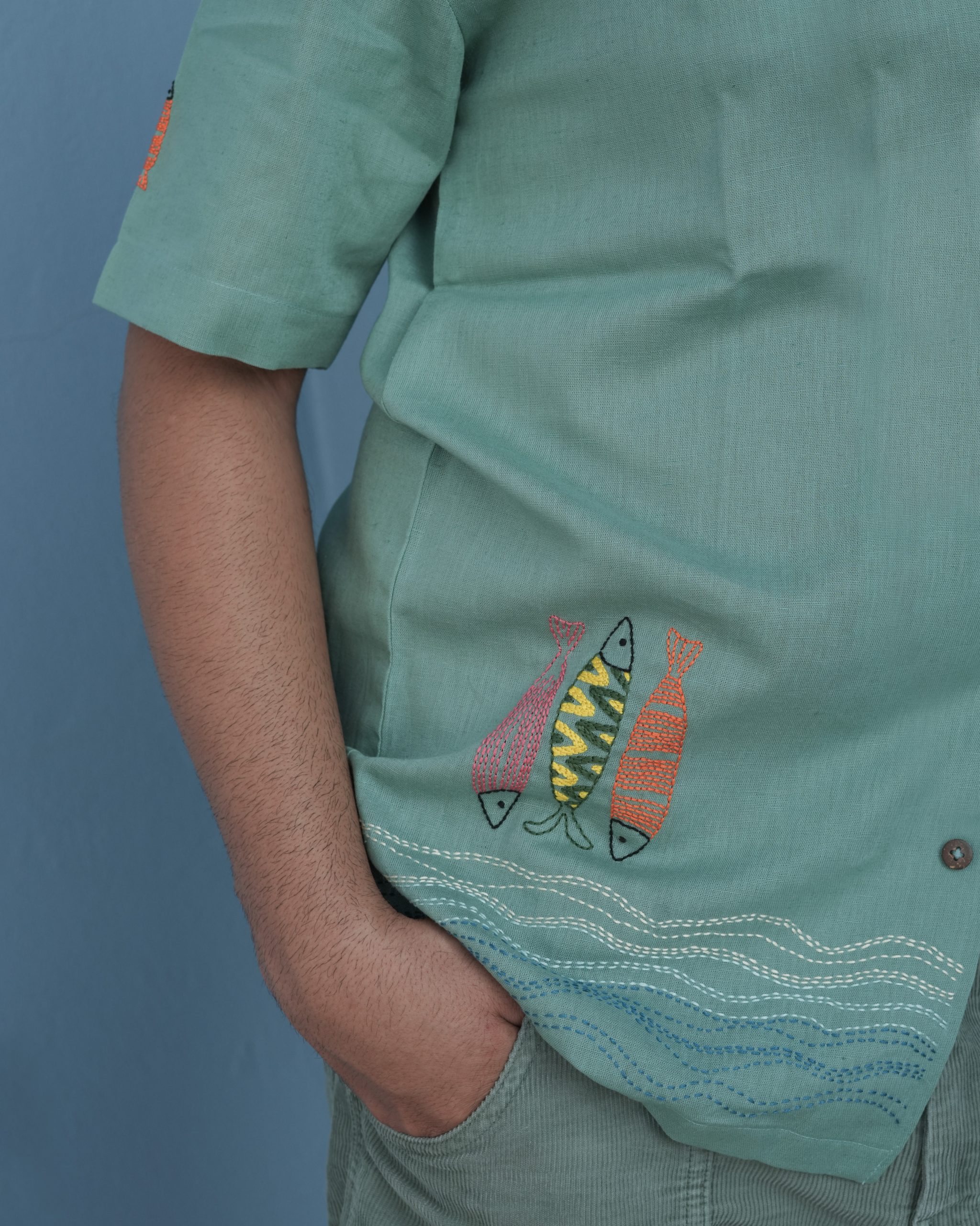 Embroidery: Each piece features hand-stitched embroidery brought to life by skilled artisans. Every motif—be it delicate florals or custom designs—is thoughtfully placed, making each shirt a unique work of wearable art.