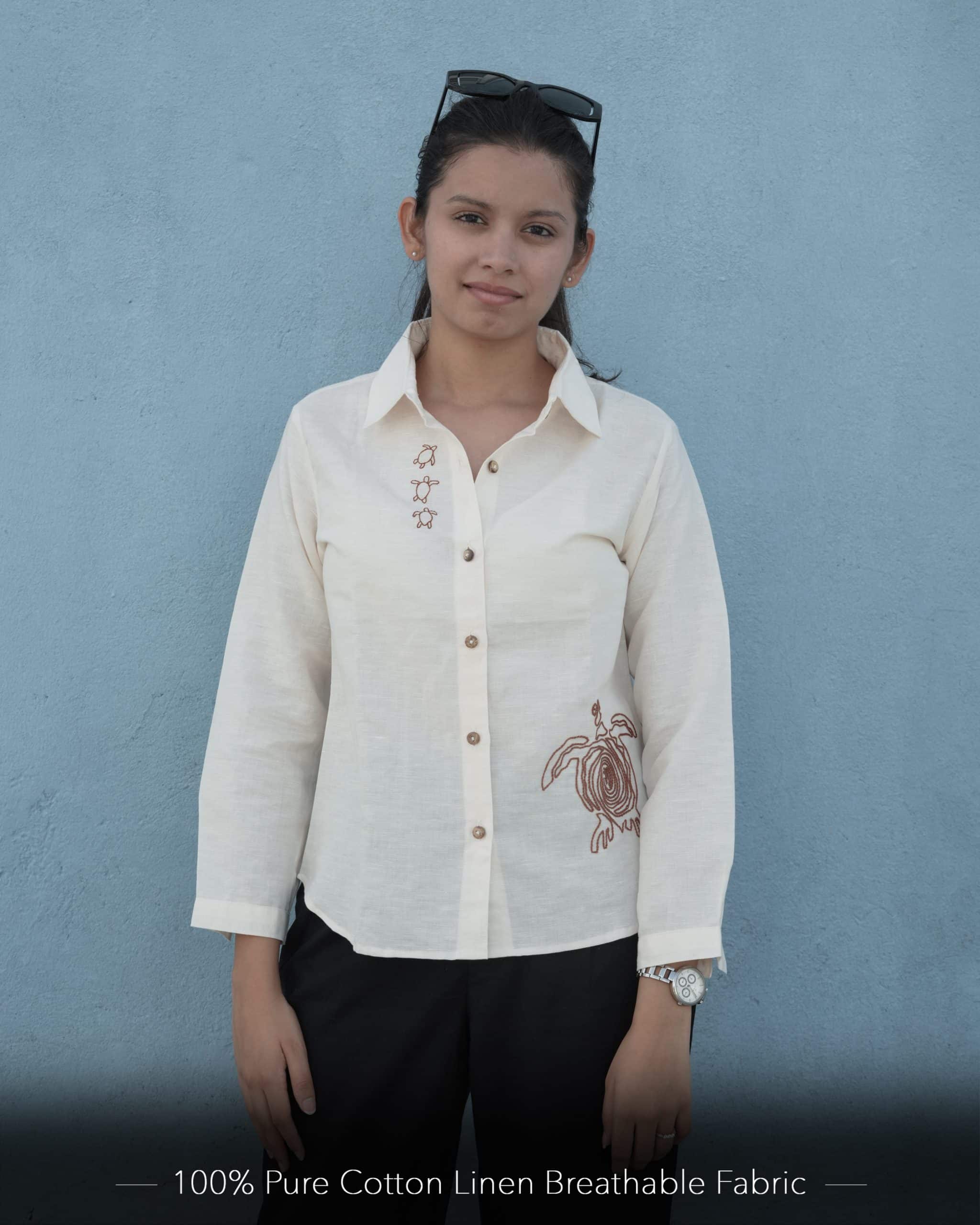 Embroidery: Each piece features hand-stitched embroidery brought to life by skilled artisans. Every motif, be it delicate florals or custom designs is thoughtfully placed, making each shirt a unique work of wearable art.