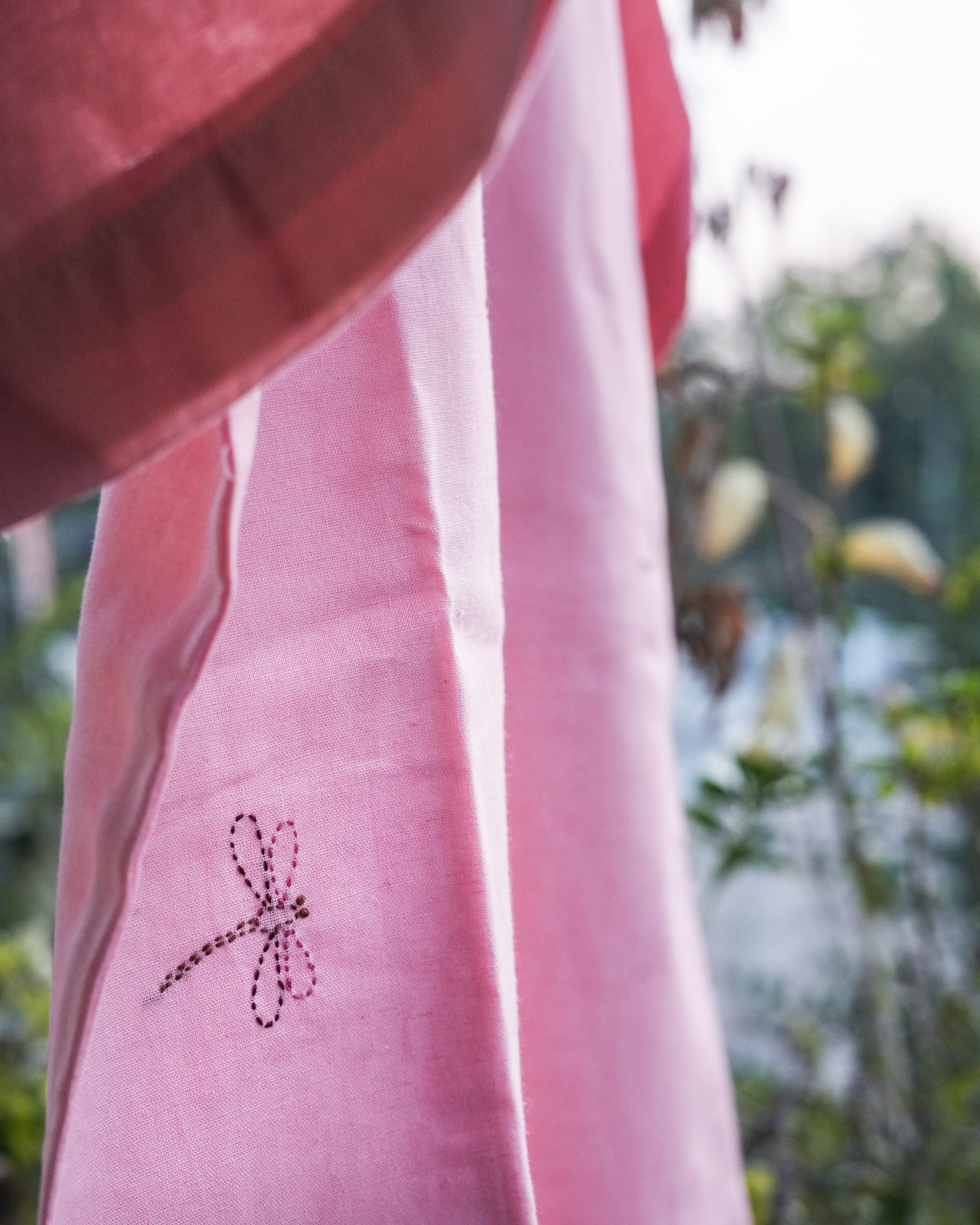 - Dry in a shaded area to prevent the colors of the hand embroidery from fading.